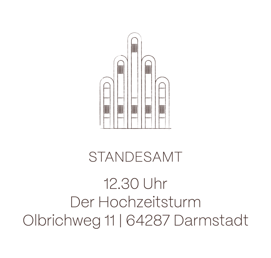 Diesen besonderen Tag möchten wir gebührend mit euch feiern! Der Tag beginnt am 12.09.25 um 12.30 Uhr mit unserer standesamtlichen Trauung im Hochzeitsturm auf der Mathildenhöhe. Die Plätze im Hochzeitsturm sind leider begrenzt, aber wir freuen uns riesig, wenn ihr uns danach dort in Empfang nehmt, um mit uns anzustoßen!